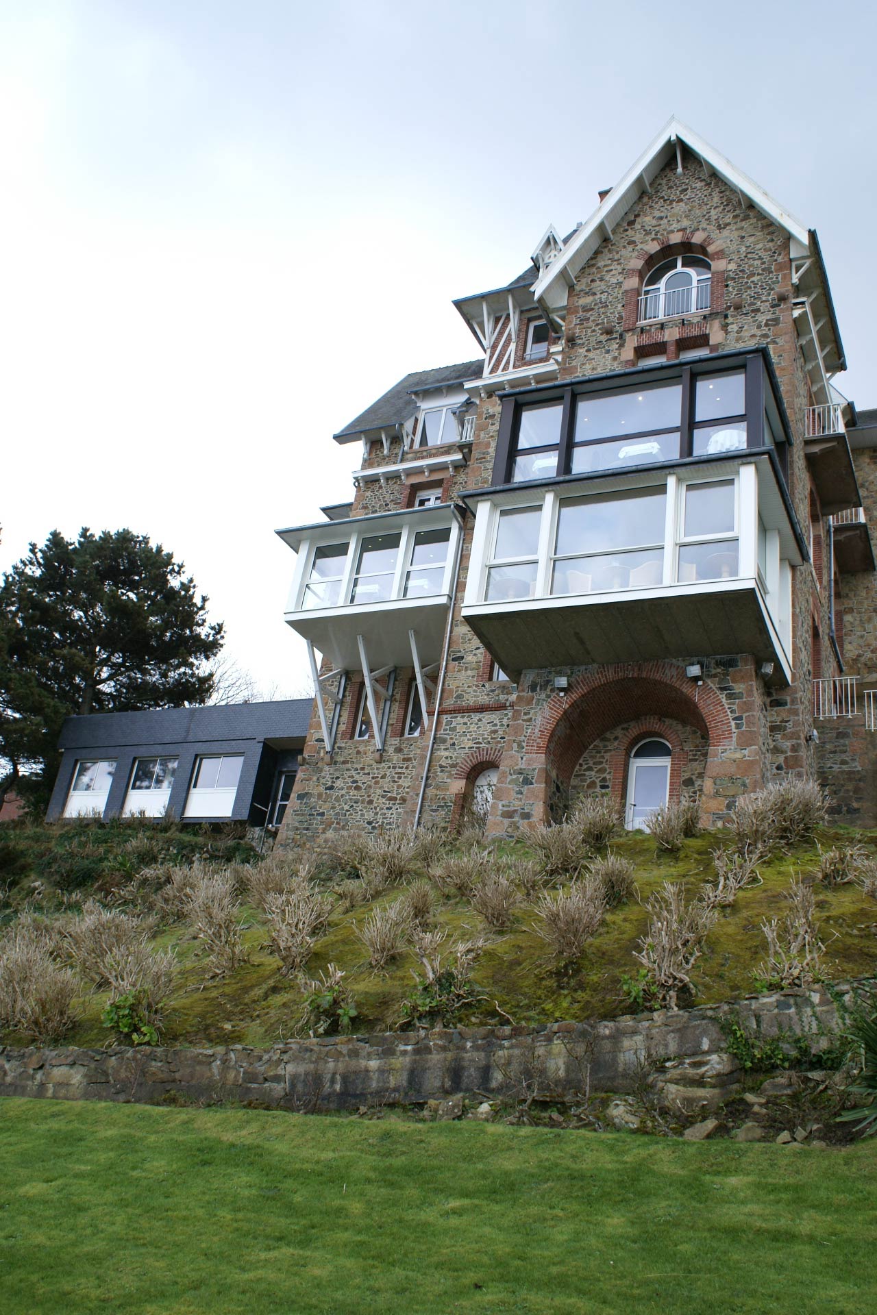 Extension de la salle de restauration et rénovation de 8 chambres I Ossature bois I Vue panoramique sur la mer I Toiture ardoise I Patrimoine.