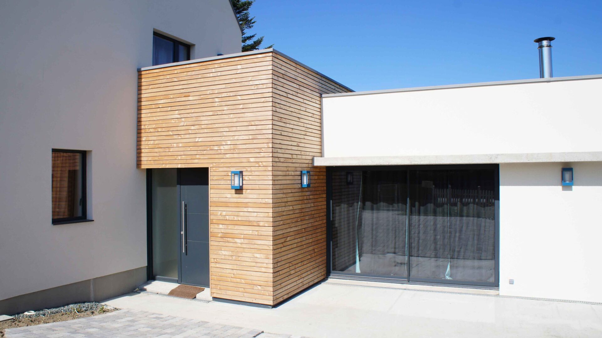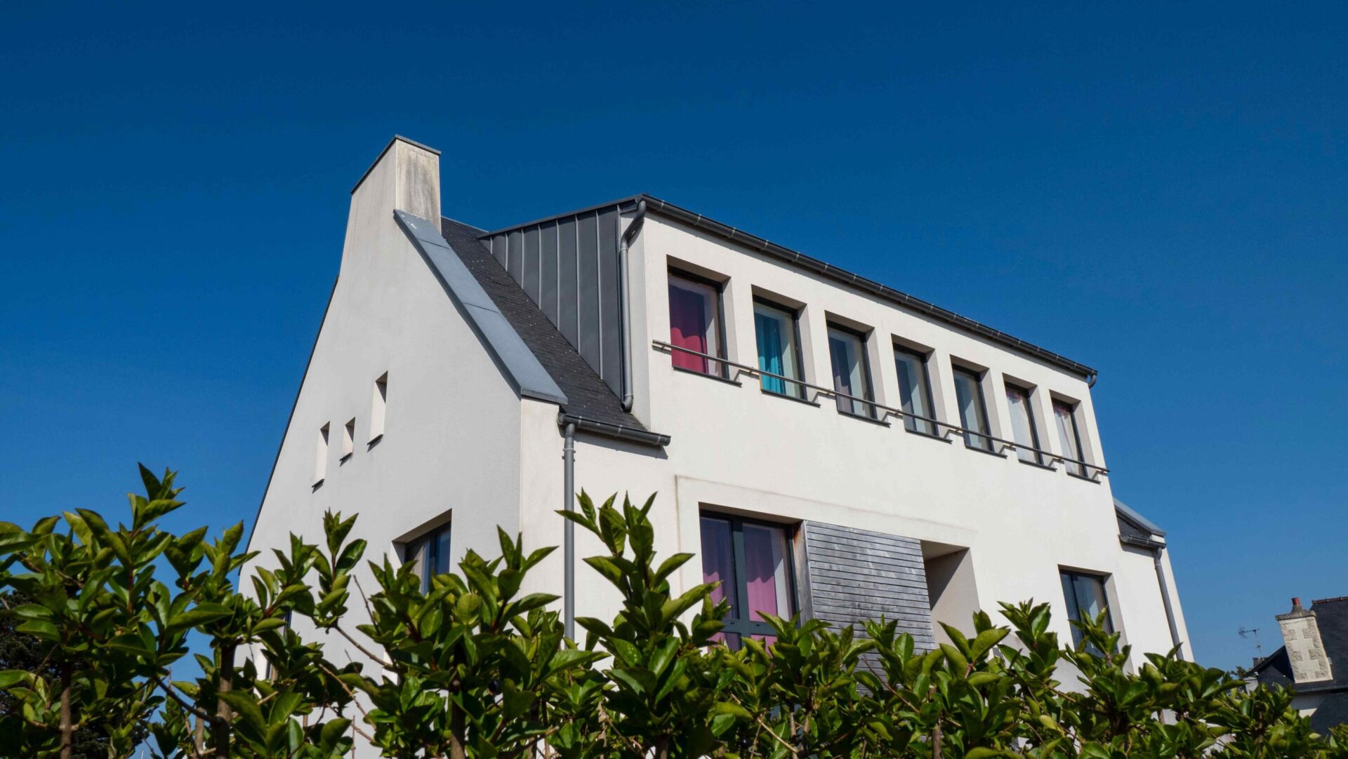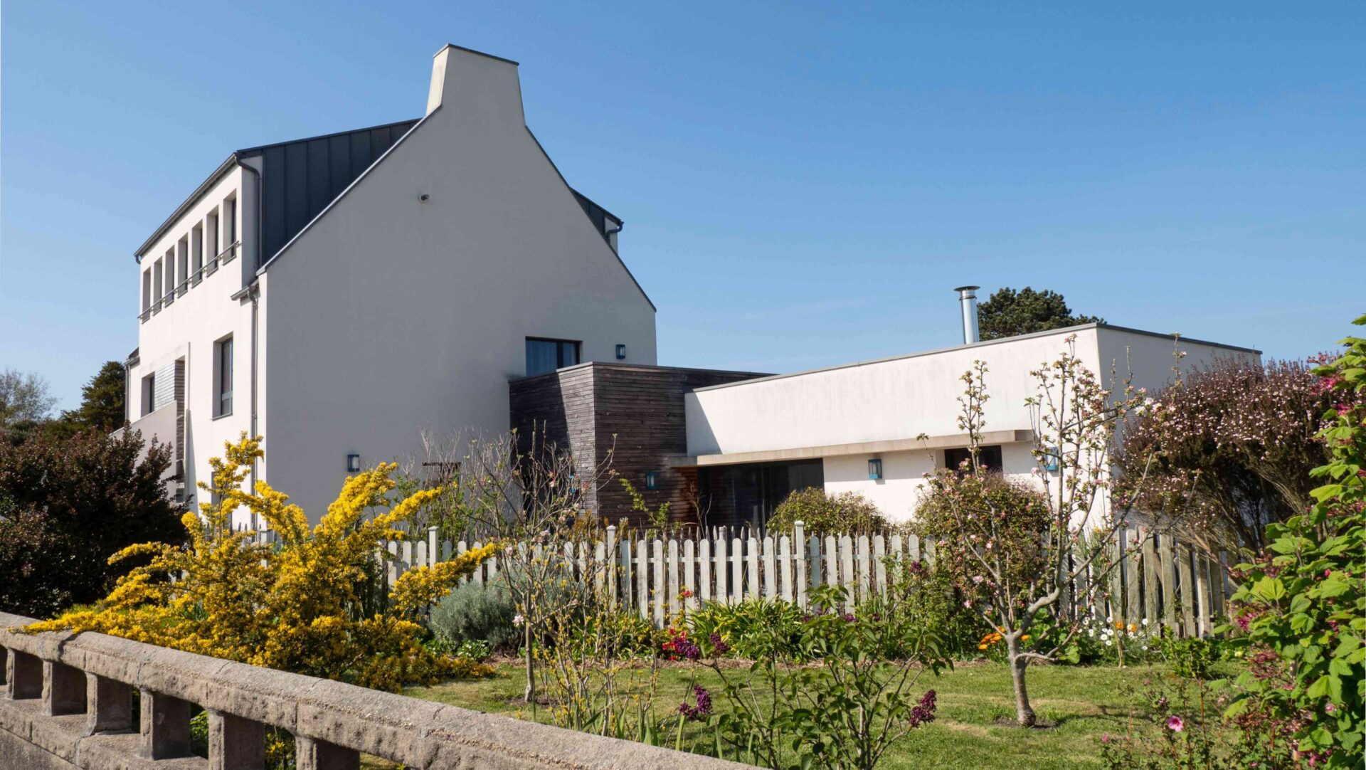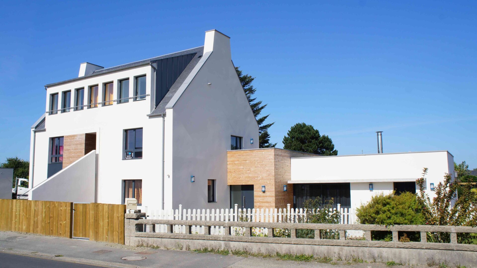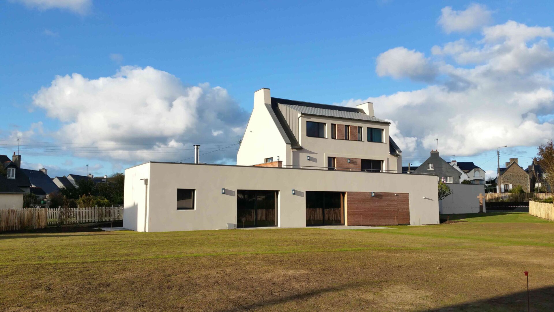 Réhabilitation et Extension I Maison Néobretonne I Maçonnerie traditionnelle I Charpente bois monopente en zinc I RT2012