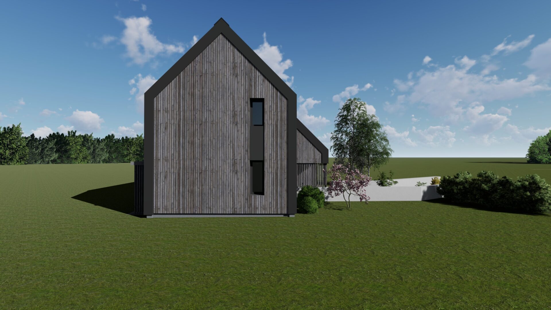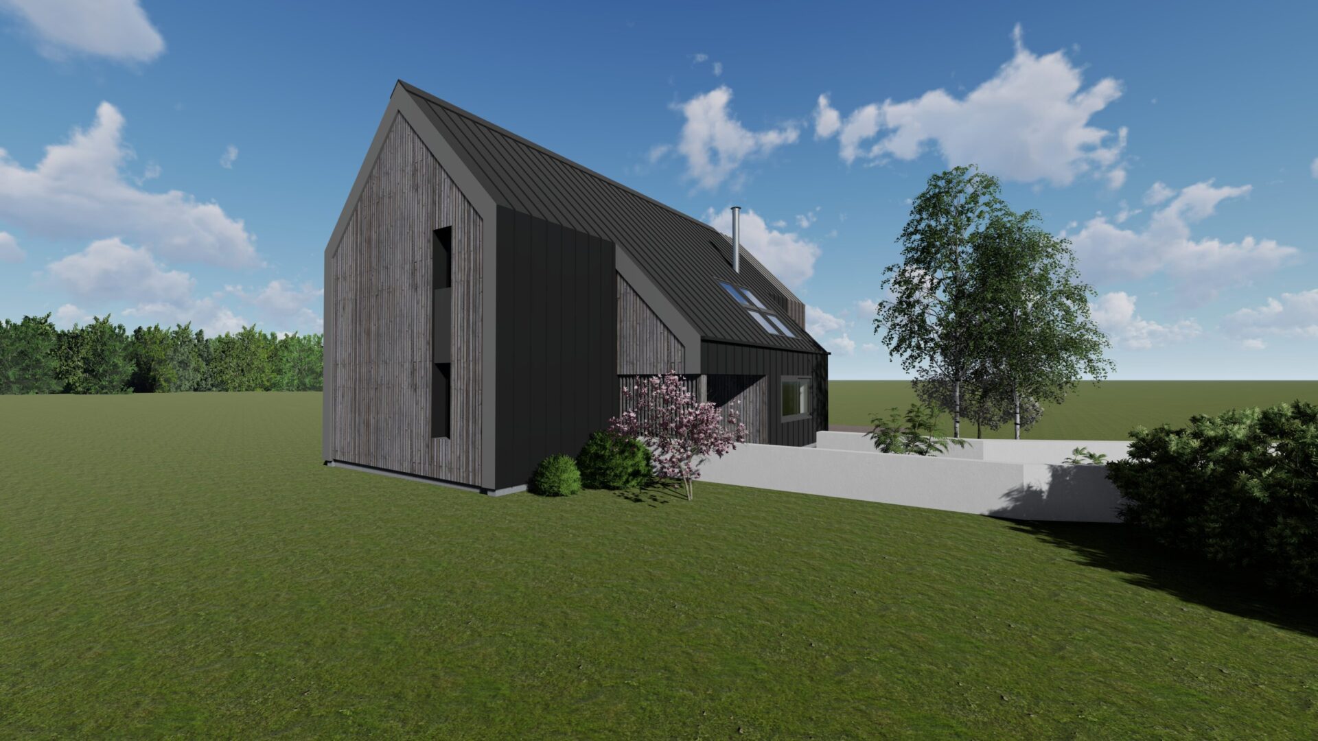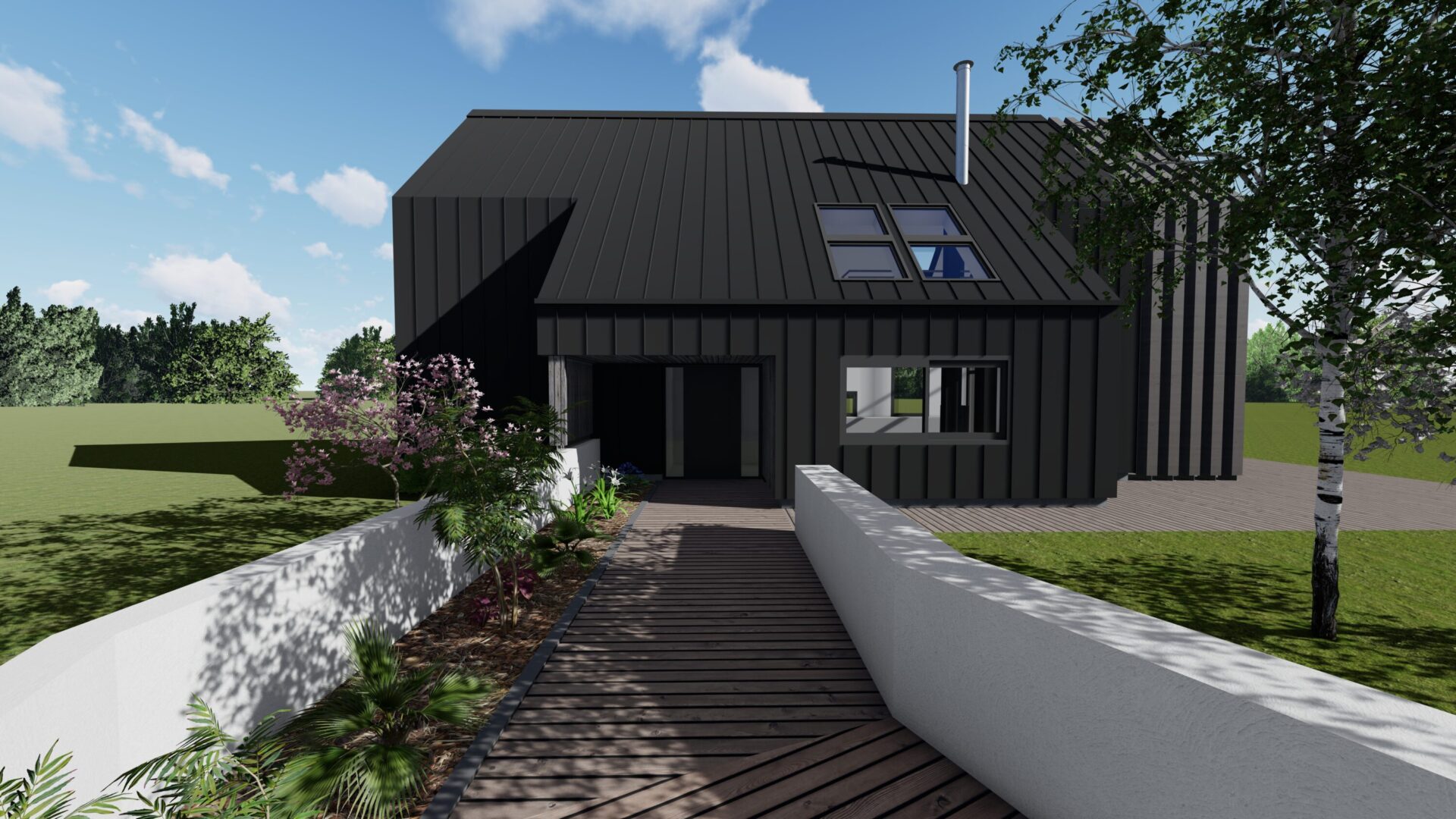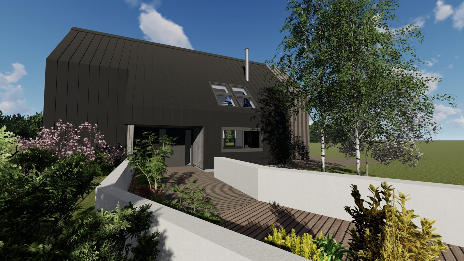 Construction Neuve I Toiture deux pentes zinc I Pignon vitré I Ossature bois I Structure métallique I RT2012.